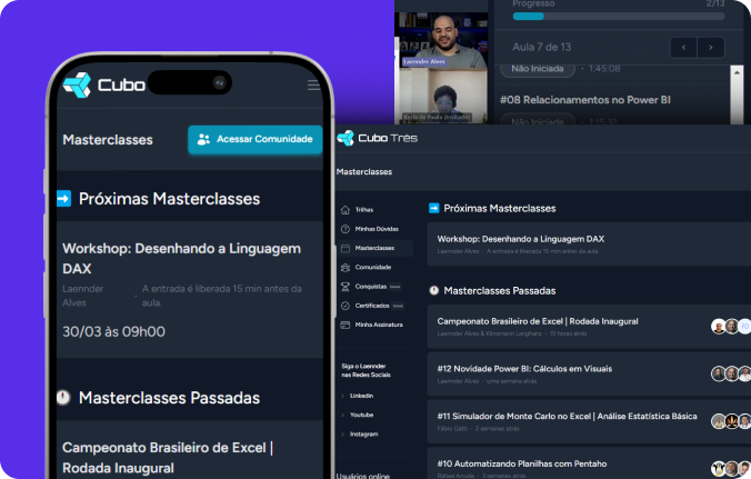 Semanalmente oferecemos masterclasses ao vivo na Escola de Dados, além de workshops e eventos para potencializar ainda mais suas habilidades e conhecimentos.