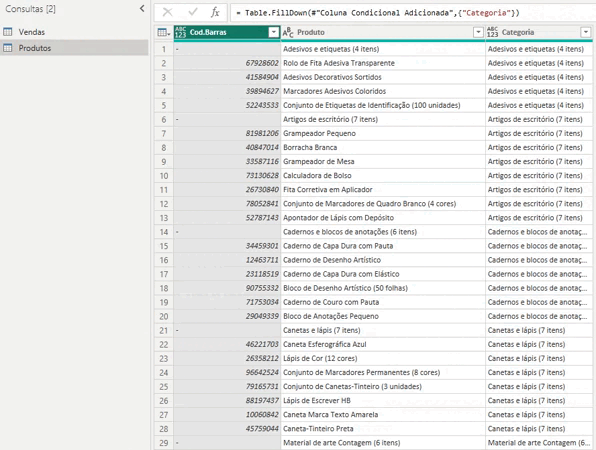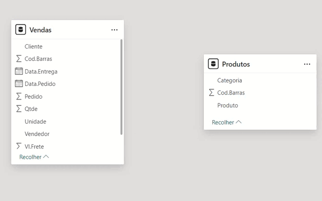 Agora temos duas tabelas: “Produtos” e “Vendas”. Com isso, podemos começar a criar nossos relatórios usando as novas informações de produtos e categorias.